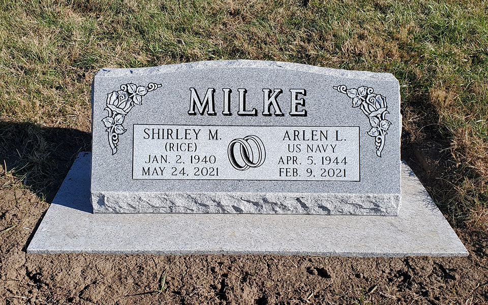 - Select a color of granite and shape for the memorial